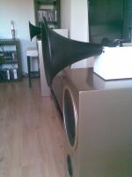 Stereolab/Celestion/Monacor - Epsen - 11.06.2010 sehr hübsch, da kommen mir glatt neue ideen, die überlegung ist nur wie ich den Treiber und das Horn befestigt bekomme.. Stereolab/Celestion/Monacor - Franky - 11.06.2010 vorne zentriert sich das Rohr ja am Horn. Hinten am Flansch des Celestion Treibers würde ich zwei Halbschalen aus Holz mit dem Aussendurchmesser = Innendurchmesser Rohr machen über die man das Rohr dann stülpen kann. Das Ganze einfach mit Dichtband fixieren. Hier mal eine Idee für einen Ständer Stereolab/Celestion/Monacor - Epsen - 16.06.2010 So, die Ringe sind schonmal drauf, danke Franky, passen super, das WE dürft der Sockel vom Lackieren kommen, dann mach ich mich an die Befestigung des Horns. Stereolab/Celestion/Monacor - Kripston - 16.06.2010 Hallo Epsen, eins ist mir anhand deines letzten Bildes unklar: Wie ist die Position des Hornmundes bei dir ? Für beide Varianten der Klon-Weichen MUSS (!!) der Hornmund 10 cm vor der Vorderkante (bzw. Schallwandkante bei versenktem Einbau des TT) des TT sein UND der HT verpolt sein, sonst wird das klangliche Ergebnis nicht wie vorgesehen sein. Viele Grüße Peter Krips Stereolab/Celestion/Monacor - Epsen - 16.06.2010 Der Hornmund ist 10 cm vor der Schallwand, auch der HT ist veroplt angeschlossen. Sieht man schlecht auf dem ersten Foto, hab ich wohl im schlechten Winkel fotografiert, sorry. Gruß Thomas Stereolab/Celestion/Monacor - WassermannSB - 28.06.2010 Hallo, ich möchte an dieser Stelle einmal ein großes Dankeschön an die Entwickler des Menhir Klons und auch an Frank Kuhl (Original) schicken. Da ich das Stereo Lab Horn verwenden wollte, hatte mich Frank Kuhl auf diesen Thread aufmerksam gemacht. Der Lautsprecher klingt wirklich hervorragend. Er brauchte doch eine lange Einspielzeit, ist aber nun herrlich dynamisch bei der Sache. Und auch der Bass ist, entgegen meiner Befürchtung, sehr gut. Überraschend war für mich auch, dass man mit dieser Box sehr gut leise Musik hören kann. Ich hatte zum Vergleich auch mal meine kleine Box mit Eton ER4 und 5-880/25 angeschlossen. Verglichen mit der Menhir wirkt das Klangbild eher langweilig und flach. Muss aber dazu sagen, dass ich mit dieser Box nie richtig warm geworden bin. (Ist vielleicht auch ein unfairer Vergleich) Da dies mein erster großer Lautsprecher mit Horn ist, hätte ich an dieser Stelle noch eine Frage. Kann man diese Art der Wiedergabe (Dynamik) eigentlich noch steigern? Beim Stöbern fand ich die Threads mit dem Celestion Truvox 1020 und dem kleinen Stereolab Horn. Wenn man diesen mit einem Basshorn kombiniert und oder auch das Horn von Celestion (9040P) verwendet, ist das dann nur eine andere Box aber mit der gleichen Dynamik? (Oder die Lightning von Monacor?) Habe so ein wenig Sorgen, was nach der Menhir kommen soll. ![]() Viele Grüße aus Bremen Stefan Stereolab/Celestion/Monacor - Franky - 28.06.2010 Da Du ja aus Bremen kommst kannst Du Dir die Lautsprecher und z.B. auch die Lightning anhören. Bei mir privat in Oyten spielt noch ein 3 Wege Hornsystem was Du Dir gerne mal anhören kannst. Du kannst Dir auch mal alte Tannoy Studiomonitore aus den 60er Jahren mit 38er Koaxial Chassis anhören. Die wussten damals schon ziemlich genau wie man richtig gute Lautsprecher baut. Stereolab/Celestion/Monacor - elheizo - 28.06.2010 Hallo Franky, hast du mal nen Link auf die Tannoy, ich wastel aktuell hier mit nem DU316 .