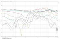 Neutraler Frequenzgang, optimales Abstrahlverhalten beim aktuellen Musikmaterial? - ctrl - 07.09.2016 Hallo, Zitat:Das Abstrahlverhalten ist bei Horn/Treiber Kombis ja schon deutlich anders, gerade im Bereich 2-3 kHz....Denkst du da an Schallführungen (Limmer,...) oder an "echte" große Hörner? Habe keinerlei (Hör-) Erfahrungen damit. Wenn damit ein linearer FG mit gleichmäßigem Abstrahlverhalten bei angenehmem Klang, trotz hohem Schalldruck, in den kritischen Frequenzbereichen möglich ist, wäre meine Eingangs-Behauptung, dass der Fehler zum Teil schon im Musikmaterial steckt widerlegt. Zitat:Könnte mir bei den Druck-Kammer-Treibern eine unangestrengtere, weniger lästige Wiedergabe dieses Bereichs vorstellen!Hat jemand konkrete Erfahrung damit oder besser einen LS zur Verfügung um z.B. die im oberen Post verlinkten Musikstücke zu hören und auch noch Messungen dazu? ....wahrscheinlich zu schön um wahr zu sein ;-) Mir persönlich geht es nur um HiFi-Hören bei gehobenem Schalldruck, der LS muss keine PA Fähigkeiten besitzen. Zitat:Muß ja nicht unbedingt ne Treiber - Horn combi sein, AMT's (Mundorf) oder auch Magnetostaten (Stageaccompany), klingen im Heimbetrieb selbst bei deutlichst forcierter Gangart völlig entspannt.Der Seas 27TBCD klingt auch völlig entspannt, das Großsignalverhalten ist für meine Ansprüche vollkommen ausreichend. Die Klirrwerte der verschiedenen Weichenversionen sind immer völlig unauffällig (siehe weiter oben, da hab auch mal eine Klirr-Messung im Post). Zitat:Das unterschiedliche Abstrahlverhalten macht in der Tat den Unterschied im Raum.Kann ich voll unterschreiben. Kann man schon bei meinen Beispielen erkennen. Der Schalldruckverlauf auf 15° ist bei allen Entwürfen ähnlich, z.T. fast deckungsgleich, aber alle Versionen klingen komplett unterschiedlich. Wäre auch schlimm wenn es anders wäre, dann könnte man um LS-Literatur einen großen Bogen machen, den FG auf 0° irgendwie linear hinbiegen und gut wäre - viel zu einfach ;-) Hier die FG auf 15° für die 24dB/1,5kHz, die 12dB/2,3kHz und die 12dB/3,2kHz Trennungen: Gruß Armin Neutraler Frequenzgang, optimales Abstrahlverhalten beim aktuellen Musikmaterial? - 2pi - 07.09.2016 Hi, du könntest mal probieren, so einen Achs-F-Gang einzustellen. Ich weiß, das ginge aktiv natürlich einfacher. ![]() Ich empfehle das ansonsten nur für extrem weit abstrahlende LSP bzw. Omnis, die mit einem linearen F-Gang in Räumen immer zu hell klingen würden, auch bei geringen LST. Aber das könnte bei entsprechender Dosierung deinem Empfinden schmeicheln. Andere haben das auch schon mit Standard-LSP versucht und waren durchaus zufrieden. Die Senke um 1KHz ist nicht wichtig für die Betrachtung, aber 2,5KHz und oberhalb. Die Herleitung, bezogen auf diesen LSP, http://www.2pi-online.de/html/demokrit.html ist hier beschrieben. http://www.2pi-online.de/html/interim_conclusions1.html#Update29-Mar-2012EQ Das war ein Prozess, daher ist der Text länger ausgefallen. Ich will die Geschichte aber nicht kürzen. Die Zusammenfassung beginnt dann hier: http://www.2pi-online.de/html/interim_conclusions1.html#Eq.revisted Kripston hat das Gesamtergebnis dieser Variante, http://www.2pi-online.de/html/demokrit-t.html von der auch der F-Gang oben stammt, bereits gehört und ebenfalls für gut befunden. Vielleicht hilft dir das ja weiter. Grüße P.S. Habe auch mit ein paar "PA Leuten" gesprochen. Die arbeiten auch häufig in diesen "Bändern", besonders in "schwierigen" Hallen. Neutraler Frequenzgang, optimales Abstrahlverhalten beim aktuellen Musikmaterial? - Slaughthammer - 07.09.2016 Ich hab mal mit meinen PA-Koaxen in ein paar Sachen davon reingehört, Lautstärke >90dB am Hörplatz (Messungen siehe Anhang): ctrl schrieb:Gregory Porter - Work SongHört sich für mich unauffällig an. ctrl schrieb:The Coffinshakers - The Coffinshakers' ThemeInstrumental alles OK, die Stimme ist bei den Formanten, insbesondere S und T Laute etwas hart. Das würde ich aber eher bei 7-10 kHz suchen, und ist wohl vom Tontechniker so gewollt. ctrl schrieb:Megadeth - Forget To RememberAh, das ist schon eher meine Welt, klingt so wie solche Musik halt klingen muss. In die Fresse. Man braucht aber auch erstmal einen Bass, der das bei den Pegeln sauber mitmacht. Ich höre generell viel Metal, auch durchaus mal etwas weniger polierte Produktionen (manche würden schlechte Aufnahmen sagen), und mit diesem Lautsprecher passt das eigentlich immer auch bei ordentlich Pegel. Gerade diese weniger durchgestylten Produktionen brauchen häufig erstmal etwas Pegel bis der Mix sinnvoll klingt. Da ist einfach nicht so viel Loudness eingebaut... Wie gesagt, ich halte von Kalotten für hohe Lautstärken (über 80 dB am Hörplatz) nicht viel. Da funktionieren Hörner deutlich besser. Mit Kalotten in Waveguides muss ich mich nochmal irgendwann befassen, ob das auch funktioniert. Muss halt ab 2 kHz schon richten, braucht halt ein großes Waveguide. Gruß, Onno Neutraler Frequenzgang, optimales Abstrahlverhalten beim aktuellen Musikmaterial? - ctrl - 07.09.2016 Hallo, Zitat:Bass ist kein Problem, aber in diesem Stück finde ich die Stimme von Dave Mustaine ziemlich aufdringlich bis unangenehm.Zitat:Zitat von ctrlAh, das ist schon eher meine Welt, klingt so wie solche Musik halt klingen muss. In die Fresse. Man braucht aber auch erstmal einen Bass, der das bei den Pegeln sauber mitmacht. Wenn ich im Vergleich die 1992 - Countdown To Extinction anhöre, klingt die Stimme völlig normal. Wenn wir mal annehmen, dass sich der Schalldruckverlauf seiner Stimme (oder wie auch immer der richtige technische Ausdruck dafür ist) in 20 Jahren in nicht völlig verändert hat liegt hier ein klares Produktions-Problem vor. Danke für die Messungen. Ich habe mal die 0-90°-Messungen meiner aktuellen Weichenversion so skaliert, dass sie zu deinen Messungen passen und dann über deine gelegt (hoffe man kann noch etwas erkennen) Wenn ich es richtig interpretiere bündelt dein LS et