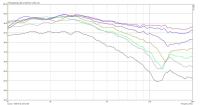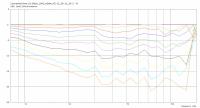 Kurzes simples WG in Schallwandstärke - wie sinnvoll? - ctrl - 23.02.2018 Hallo, in Post#39 habe ich leider die Skalierung der nicht normierten Winkelfrequenzgänge verkackt, was die Vergleichbarkeit etwas schwieriger macht. Deshalb hier nochmal die angeglichenen nicht normierten Winkelfrequenzgänge deg0-90 von Simu und Messung: Bis 45° sind die Frequenzgänge <13kHz praktisch deckungsgleich (mit geringen Abstrichen im Bereich 1-2kHz). AxiDriver ist Dope! Gruß Armin Kurzes simples WG in Schallwandstärke - wie sinnvoll? - Gaga - 23.02.2018 Hi Armin, schön, dass Du nochmal nachgeschaut und das korrigiert hast - ich hatte mich schon über die großen Unterschiede gewundert. :ok: Gruß, Christoph PS: Hier mal eine ABEC-Simu Deines letzten WGs in einem Gehäuse, B=20cm, H=30cm, T=20cm (wieder auf Basis des Skripts von Nils). Gehäuse ohne Fasen: Abstrahlung horizontal, nur HT: Abstrahlung horizontal, normiert 0°, nur HT: Winkelfrequenzgänge 0-90°, 10°-Schritte, nur HT: Man sieht ganz gut, wie der HT/das WG durch den Einbau in die Front weiter nach unten bündelt. Die Unregelmässigkeit um 2,5-3kHz wird durch Fasen an den Gehäusekanten vermutlich verbessert werden können. Der Einbruch unter Winkeln bei >10kHz, der in Deinen Messungen/Simus zu sehen ist, deutet sich auch hier an. Die liegt offenbar in der WG-Kontur. Obacht, Ich habe nicht darauf geachtet, ob/dass die Kalotte mit der von Dir simulierten übereinstimmt. Über 14 kHz habe ich nicht dargestellt, da die Auflösung dieser Simu nicht ausreicht. Wenn DU mit der WG-Kontur klar bist, können wir mal in Deinem Gehäuse, mit einem Tieftöner, mit/ohne Fasen, mit ohne Weiche simulieren, wenn Du Lust hast. Kurzes simples WG in Schallwandstärke - wie sinnvoll? - ctrl - 24.02.2018 Hallo, Christoph, danke für die Simulation! Zitat:Hier mal eine ABEC-Simu Deines letzten WGs in einem GehäuseNur um sicher zu sein, du beziehst dich auf Post#39, Schallwand 19mm mit Mini-WG Hals 33mm Durchmesser, 3mm Höhe, verrundet mit Radius 16mm auf einen WG-Mund von 65mm? Zeigt auf jeden Fall sehr schön wie früh die Abstrahlung des WG durch die Schallwand beeinflusst wird - insbesondere unter kleinen Winkeln. Um die Abstrahlung relativ unabhängig von der Schallwand kontrollieren zu können, müsste schon um 4kHz (oder höher) getrennt werden. Hier die normierte Abstrahlung des Mini-WG aus Christophs Post#42 auf üblicher Skalierung: Bei herkömmlicher Trennung um 2-2,5kHz würde man die "sprunghafte" Aufweitung mit nachfolgender Einschnürung (von hohen zu tiefen Frequenzen) durch Wechselspiel von SW und WG komplett mitnehmen. Damit wäre die Abstrahlung sehr wahrscheinlich übler als ohne WG - müsste man mal mit Simu überprüfen ;-). Was für mich persönlich, den Einsatz von HT mit Mini-WG nur bei sehr hoher Trennung mit entsprechender kontrollierten Abstrahlung im MT (3-4'' TMT+WG oder MT-Kalotte+WG) sinnvoll macht. Gruß Armin Kurzes simples WG in Schallwandstärke - wie sinnvoll? - Gaga - 24.02.2018 Hallo Armin, ich habe das 3-stufige WG aus Beitrag #30 simuliert: Zitat:Breiter abstrahlend, lädt weniger tief Sollte zunächst einfach ein Beispiel sein, ich wollte schauen, wie ich das Skript entsprechend anpasse. Wie gesagt, wenn WG-Kontur, Gehäuse und TMT klar sind, dann kann das zusammen simuliert werden... Zitat:Bei herkömmlicher Trennung um 2-2,5kHz würde man die "sprunghafte" Aufweitung mit nachfolgender Einschnürung (von hohen zu tiefen Frequenzen) durch Wechselspiel von SW und WG komplett mitnehmen. Damit wäre die Abstrahlung sehr wahrscheinlich übler als ohne WG - müsste man mal mit Simu überprüfen ;-)....auch mit unterschiedlichen Übergangsfrequenzen, Fasen, Schallwandbreiten, Einbaupositionen etc. Gruß, Christoph Kurzes simples WG in Schallwandstärke - wie sinnvoll? - ctrl - 24.02.2018 Hallo, Zitat:Das ist mal ernüchternd! Hätte nicht gedacht, dass die Schallwand schon so früh Einfluss auf die Abstrahlung nimmt, noch deutlich innerhalb des WG Wirkungsbereich.Zitat:Zitat:Sollte zunächst einfach ein Beispiel sein, ich wollte schauen, wie ich das Skript entsprechend anpasse. Wie gesagt, wenn WG-Kontur, Gehäuse und TMT klar sind, dann kann das zusammen simuliert werden... Deswegen dachte ich auch du hättest ein kleineres WG simuliert - sehr lehrreich für mich! Zitat:...auch mit unterschiedlichen Übergangsfrequenzen, Fasen, Schallwandbreiten, Einbaupositionen etc.Ja, das wäre vom Umfang noch ein weiterer Thread ;-) Gruß Armin Kurzes simples WG in Schallwandstärke - wie sinnvoll? - Gaga - 24.02.2018 Hallo, Zitat:Das ist mal ernüchternd! Hätte nicht gedacht, dass die Schallwand schon so früh Einfluss auf die Abstrahlung nimmt, noch deutlich innerhalb des WG Wirkungsbereich.Ja, ich hatte das mal mit dem rechteckigen Visaton-Waveguide ausprobiert, senkrechte vs horizontale Anordung hier und mit angebrachten Fasen hier. Ich war auch erstaunt, wie stark der Einfluss der Schallwand, bzw. Diffraktion an den Schallwandkanten trotz Waveguide tatsächlich ist. Daher ist es halt sinnvoll, Waveguide, Schallwand, Fasen und angestrebte Übergangsfrequenz gut aufeinander abzustimmen. Gruß, Christoph Kurzes simples WG in Schallwandstärke - wie sinnvoll? - ctrl - 02.03.2018 Hallo, habe mich mal mit dem parametrisierten ABEC-Projekt von Nils beschäftigt - es wurde in Post#37 von Christoph verlinkt. [Off-topic] Im Elements.txt Skript scheint ein kleiner Fehler versteckt zu sein, denn sobald eine bestimmte Höhe für den LS überschritten wird, erhält man beim Meshing eine Fehlermeldung - Irgendwas mit "Elements.txt Baffle #15". Nach dem Meshing fehlt dann das Mesh auf der LS-Front. [/Off-topic] Daher konnte nur ein kleiner LS mit 350mm Höhe simuliert werden. Die Schallwandbreite beträgt 25cm mit angedeuteter 16mm Verrundung. Zum Einsatz kommt, wie schon in Christoph's Bsp aus Post#42 ein 3-fach gefastes WG - hier mit 135mm Durchmesser und einer Tiefe von 30mm. Der Durchmesser des TMT beträgt 145mm. Auf unendlicher SW sim