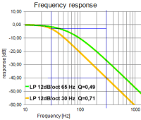 Oben ist das normale shelf-Filter, das zuerst absenkt, um bei höherer Frequenz wieder zu "linearisieren". Man müsste nur das Verhalten an der höheren Frequenz "umdrehen", um statt der "Linearisierung" eine zusätzliche Tiefpass-Filtersteilheit zu erhalten. Ich bin mir sicher, dass das mit den biquads keine große Show wäre, bloss: An welcher Schraube dreht man? Der Qts-Unterschied ist bei aktiven Lösungen kein so großes Problem wie bei passiven: Er muss nicht mit massivem Kupfer bezahlt werden.