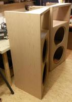 Abschied vom Klipschhorn - Vinylschaber - 10.08.2015 Hallo Leute, nachdem ich nun ein paar Tage hier im Forum bin und ausser meiner Kurzvorstellung nur wenig von mir gegeben habe, möchte ich das heute nachholen und mein aktuelles Projekt vorstellen. Zum Arbeiten ist es mir heute einfach zu warm. Zunächst vielleicht ein paar Worte zu mir: Ich liebe Hörner und große Lautsprecher. Von Anfang an habe ich die Leute um mich herum davon überzeugt, dass ein kleiner Lautsprecher nicht klingen kann. So wie der Mantel in den Schrank, das Auto in die Garage passen muss, so sollte der 5-Saitige Orchester-Kontrabass in den Lautsprecher passen. Diesen Vergleich sehen die meisten Laien ein, auch wenn er, zugegeben, etwas hinkt. Mit der Orgel kam ich schon freiwillig lieber nicht an... Einpaar Worte zur Historie: Recht früh (1985) habe ich ein Klipschhorn gebaut. Und da war auch schon der erste Kompromiss: ich hatte einfach keinen Platz für 2 Stück. So bleb es lange (bis vor kurzem) beim Monobass. Im Lauf der Jahre baute ich verschiedene Satelliten. Das Highlight sollte ein Kugelwellenhorn aus Beton mit einer unteren Grenzfrequenz von ca. 250 Hz werden. Das Ding habe ich auch wirklich gebaut (gegossen): aber es kam nie richtig zum Einsatz, denn kaum war ich fertig, bot sich die Gelegenheit, professionelle CD-Hörner samt Treiber (Electro Voice) zu bekommen. Ich habe also beide Hörner verglichen. Mit Hörtests und meinen damaligen Messmöglichkeiten (Neutrik-Schreiber, vom Kumpel geliehen). Die Unterschiede waren für mich unhörbar und die Differenzen in den Messungen waren marginal. So entschied ich mich für die EV-Kombi statt des immerhin 30 Kg schweren Beton-Elefanten. Zumal da noch seeehr viel Arbeit dran wäre, das Ding auch noch schön zu bekommen. Ich verhökerte also 2 Beton-Kugelwellenhörner für immerhin 1€ bei Ebay... Hier also die Bestückung, die vorhanden ist: Hochton: JBL Schlitz-Strahler Mod. 2405 Mitte: EV-Horn HP940 + Treiber EV-DH 1A Bass: Beyma GT15-200 (derzeitig im Klipschhorn verbaut) Das Ganze ist aktiv, gesteuert über eine Behringer DCX 2496 Weiche. Eigentlich könnte man es ja so lassen. Aber das Ganze hat folgende Probleme: Das Klipschhorn funktioniert – Bauartbedingt – nur in einer Raumecke. Dadurch ist die Aufstellung extrem eingeschränkt und da es ein Mono-Bass ist, der erst relativ hoch abgekoppelt wird (350 Hz) muß er auch mittig zwischen den beiden Satelliten stehen, sonst verschiebt sich das Klangbild in Richtung Klipschhorn-Ecke. Das nächste Problem ist, dass das Mitteltonhorn zu seiner unteren Grenzfrequenz hin echt vergewaltigt wird, man müsste es viel höher abkoppeln, aber dann geht es nicht mehr mit einem Monobass. Trotzdem klingt das Ganze richtig gut, extrem direkt und ehrlich. Jetzt steht ein Umbau unserer Wohnung an. Und da lässt sich das Klipschhorn nicht mehr unterbringen. Ich möchte nun etwas bauen, was möglichst nicht schlechter klingt, aber flexibler in der Aufstellung sein soll. Unter Verwendung der vorhandenen Chassis. Mein Kumpel hatte im Keller wunderbare 38ger JBL-Treiber mit dazu passender JBL-Passivmembrane. Leider war ein Treiber durchgebrannt und alle Schaumstoff-Sicken weggekrümelt. Die Mächtigen Magnete sind aber unkaputtbar. Was uns animierte, es mit einem Reconing zu versuchen. Ich bestellte also (in USA) After-Market Kits für die Treiber und Passiv-Membranen. Leider ging das Reconing-Vorhaben gehörig schief! Details erspare ich Euch, aber falls jemand so etwas vor hat, gebe ich gerne Auskunft, wo der Hund begraben lag. Ich verbuche die nicht ganz billigen Reconing-Kits samt Shipping Kosten und Zoll unter „Lehrgeld“ und mache das nicht nochmal. Wenigstens sind die Passiv-Membranen erfolgreich renoviert. Da durch das verunglückte Reconing Projekt auch viel Budget in den Sand gesetzt wurde, schaute ich bei Ebay, ob man nicht noch einen 2. Beyma GT 15-200 auftreiben kann. Und ich hatte Glück, ich konnte ihn ersteigern. Nun nimmt mein Projekt also Formen an: Geplant ist ein BR-Gehäuse mit ca. 130 l Innenvolumen für den Bass, soll bestückt werden mit dem Beyma und der JBL-Passivmembran. Oben ca. 1,2 m hoch soll dann die Mittel-Hochton Einheit mit dem EV-Horn+Treiber und dem JBL-Schlitz sein. Da die meisten Boxen schräg hingestellt werden, damit sie den Geniesser direkt anstrahlen, habe ich mir überlegt, die Schallwand gleich schräg zu bauen (15°) und die Boxen dann gerade an die Wand zu stellen. Hier ein gerendertes Inventor-Bild meiner Planung: Und angefangen zu bauen habe ich auch schon. Eigentlich sollte alles aus 30mm „Birkoplex-Buche“ werden, aber beim Preis bin ich dann umgekippt. Jetzt ist es aus 28mm MDF, „furniert“ mit 3,6mm A/BB Buche MPX . Hier ein reales Bild des aktuellen Standes: Jetzt muss noch gebeizt, geschliffen, lackiert,.... verdrahtet werden. Und da das Ganze ja auch über die Behringer gesteuert wird, muss vor Allem dann GEMESSEN, nachgestellt, GEMESSEN, probegegört, gemessen werden. Und da freue ich mich schon wie ein Lausbub auf den Arta-Mess Stick, den SNT-Sven für diese tolle Gemeinde hier entwickelt !!! Für mich sieht es fast so aus, als würde das Ganze eine zeitliche Punktlandung werden. Realistisch werde ich gegen Ende September die ersten ernsthaften „Geräusche“ aus den Boxen hören, da kommt der Stick genau richtig. Falls Du das hier liest, Sven: Vielen Dank vorab für die super Entwicklung, Ich drück auch die Daumen, dass die daran hängende Bürokratie nicht zu kompliziert wird!! Ich hoffe, Ihr habt nun einen kleinen Eindruck von mir und meinem Projekt. Ich freue mich auf Eure Kommentare, Kritiken, Anregungen und Fragen. Viele Grüße, Rudi Abschied vom Klipschhorn - 3eepoint - 10.08.2015 1. Genau meine Kragenweite ^^ 2. Yay, Inventor =D 3. Schönes Projekt ! Hörner, grade CD, sind was feines. Passivmembrane in dem Stil gibts auch selten....... Was das Reconing angeht kannst du dich ja mal mit hoschibill kurzschließen, wenn nciht zum erneuten Versuch, dan