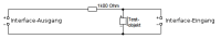 Also Ausgang Interface - 1kOhm R - dann Messpunkt Lautsprecher oder Referenzwiderstand (gegen Masse) - dann Interface Eingang. Die Masse Interface Ausgang und Eingang sind verbunden.
