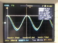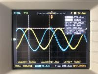 Ok, das Scope in REW ist schonmal nicht echtzeitfähig. Daher habe ich das jetzt erstmal mit einem echten Osca gemacht. In REW einen 1kHz Sinus erzeugt und Zweikanalmessung mit einem Hardwareoscilloskop.