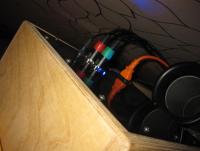 Die Kiste wird man später eh nich sehen. Das Gehäuse hatt ich noch im Keller. Das Relais hinter der 220 Volt-Buchse wird von dem DSP-Gehäuse mit 12 Volt getriggert.