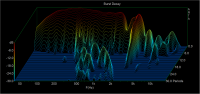 Es kommt zwar auch auf den Bezugspunkt des Diagramms (der lauteste Punkt der Messung) an; aber dieses Beispiel kann trotzdem veranschaulichen, dass was du sehen willst, der lange, schmalbandige nachschwinger einer Resonanz hoher Güte (wie eben eine Gehäusereso, oder Porteigenreso), mit den von dir gewählten Settings "verschluckt" werden kann. Ich würde dringend dazu raten die Range wieder auf den Standardwert zu erhöhen.