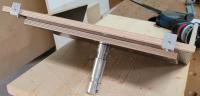 Leider hat der Motor von meinem Drehteller gestreikt, sodass ich kurzfristig zur manuellen Bedienung eine Skala aufmalen musste. Dazu habe ich einen Linienlaser an die Seite gestellt und ein Geodreieck auf den Mittelpunkt geklebt. Damit es auch ordentlich flutscht habe ich die Räder und die Lauffläche gründlich mit Silikonspray eingesprüht.