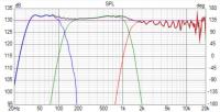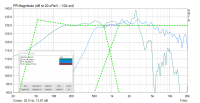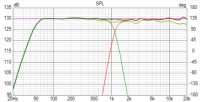 Den Frequenzgang habe ich mir als Overlay gespeichert und versucht in Kombination mit den Bässen nachzubauen. Dabei ist eine Trennung mit LR48 Filter bei 110 Hz rausgekommen.