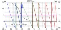Gleiches für die Trennfrequenzen. Es ist prima zu sehen, welchen Einfluss die Flankensteilheit auf alle Frequrenzgänge, Phase und Gruppenlaufzeit hat. Bei einer Flankensteilheit von 24db/Oktave (LR) sind sowohl im Bass als auch bei den TMT noch ganz "leise" die Resonanzen vom Chassis zu sehen. Dafür ist die Gruppenlaufzeit besser.