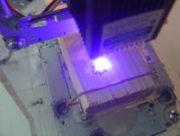 Es ist ein kleiner Laser welcher mit XY Bewegungen ein Werkstück "gravieren" kann. Das heisst reinbrennen. Es gehen somit nahezu alle organischen Materialien, also Papier, Holz, Kunststoffe etc.