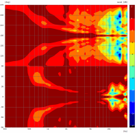 Das ist im Bereich zwischen ca 60° bis 100° schon ganz ok (gleichmäßig). Die Schwachstelle der relativ straken Abstrahlung zur Decke hin im Bereich von ca 1kHz-2,5kHz ist ebenfalls gut zu sehen.