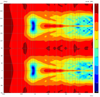Letztendlich klappt das mit Trennung doch recht passabel und besser als ich nach Einzelbetrachtung des Mitteltonzweigs gedacht hätte. Es bleibt halt der Schall der in Richtung Boden/Decke wandert (den man ggf. bedämpfen kann). Das Diagramm ist normiert auf 90°, also in Richtung Öffnung der Schallführung.