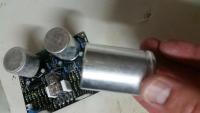 Label auf der LM3886 Platine war Jap. Chemicon. Nach dem Entfernen der Folie: das Grauen! Flicken aus Epoxidharz!!! Alu-Körper geschliffen... sowas! von außen war das nicht zu sehen... die Elkos sahen neu aus. Zum Vergleich ein günstiger echter Jamicon.