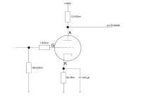 mit -1 Volt am Steuergitter bist du nicht besonders negativ. Wenn am Eingang eine hochpegelige Quelle anliegt - mit 2 Volt - dann steuerst du die Treiberröhre schon in den positiven Bereich.