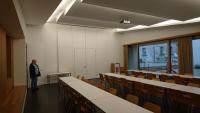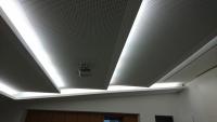 Es sind jedenfalls Akustikplatten an der Decke, auch ein Beamer ist bereits an der Decke!