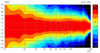 Wie man sieht, funktioniert das Abdecken der Membran recht gut, was das Abstrahlverhalten angeht. Das Abklingen habe ich wegen der entstehenden Resonanzkammer im Auge behalten. Dort gibt es nur minimale Auffälligkeiten, die aber auch von Reflexionen an der relativ dicken Pappe stammen können. Auf jeden Fall sind sie erst unterhalb von -20 dB zu sehen, was ich als unkritisch ansehe.