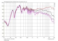 Danke für den Tip, ist jedoch nicht mehr nötig, es ist eine Entscheidung gefallen. Unten 3 Screenshots mit dem 2206H, und je MRH83, PH230 und ME20. Die Mittensenke bitte ich zu entschuldigen, der Messort für die Shots war ein anderer als die Einmessung am DSP, dort verhielten sie sich linear, deshalb zieht sich die Senke durch alle 3 Shots. Das MRH83 machte wieder das Rennen. Das ME20 verhält sich ganz ähnlich, klingt auch ähnlich, wobei das MRH83 doch noch einen "Feinheitsgrad" drauflegt. Einen Versuch mit dem 2118H als Mitteltöner hab ich gar nicht mehr gemacht, ich wüsste nicht was da noch besser werden könnte als ein vielleicht etwas ausgewogenerer Energiefrequenzgang, was den Zusatzaufwand denke ich nicht rechtfertigt.