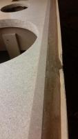 die ersten Bilder, die Seiten der Front haben eine Fase bekommen, nur aus optischen Gründen. Die Fase ist knapp 5cm breit, ein einfaches Zusatzbrett reicht dafür aus, je nachdem wie nahe dieses Brett an der Fräse ist variiert der Winkel. Hier dürften es ca. 20Grad sein. Pro Fase hat es ca. 25min. gedauert, mit einem scharfen Fräser ginge es sicher noch schneller :-) Noch stehen die Teile im Keller, muss auf die Frau warten, die ersten Boxen die ich alleine nicht vom Keller hochkrieg, einfach zu groß und schwer. Die komplette Front zwischen den Fasen wird noch mit einer abnehmbaren Frontbespannung versehen, ähnlich der Quadral Titan, der Rest der Box in Buche furniert. Mal sehen ob das die Woche noch klappt. Denke aber die Feinheiten werden auf den nächsten Urlaub verlegt, man glaubt nicht wieviel länger alles dauert mit wachsender Boxengrösse.