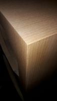 Letzte Furnier Schicht gerade verklebt, je weniger Leim drauf kommt desto besser funktioniert das ganze, auch die Fügeschlitze fallen so fast komplett weg. Hier paar Bilder, hat alles gut geklappt, das erste Gehäuse vorhin gewachst, zieht Grad ein. Werde das nächste Projekt wieder furnieren, ist viel einfacher als gedacht, zum Schluss hin gesehen. Die leichten Fügeschlitze am Anfang lass ich so, man muss genau Hinsehen um es zu sehen. verbuch ich einfach unter Lehrgeld, hab keine Lust das mit Spachteln eventuell zu verschlimmbessern. Jetzt das gerade geklebte noch abschleifen, wachsen, und morgen nochmal wachsen. Dann Chassis rein und hören.