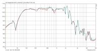Die 1. Reso entspricht der Höhe der Röhre respektive dem Abstand zwischen TMT-Magnet und Passivmembran. (Sie ist mit der Membran nach innen montiert). Anfangs hatte ich in einer Version 1 auch schon diese Reso. Und im CB konnte ich sie mit 5l loser Polyesterwatte komplett glätten. Das lässt darauf schließen, dass sie von der ungünstigen Gehäuseform kommt.