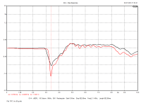 Da verschiebt sich die Phase insgesamt, aber nur geringfügig gegeneinander. Ähnlich müsste es auch bei dir sein, denn die Chassis-Größen liegen nicht so krass auseinander - aber bei 2,5 kHz täuscht man sich natürlich auch schnell was die Auswirkung von Phasenverschiebungen anbelangt.