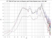 Messung der Chassis. Den Mitteltöner habe ich ohne Basotect Bedämpfung, dann mit gemessen.