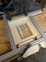Für die Herstellung der Lüftungsgitter aus MDF habe ich eine Frässchablone verwendet und diesen auf den Oberfräsentisch gespannt. Dabei waren die Außenmaße des MDF-Brettchens natürlich schon fertig. Die Enden der Langlöcher habe ich klein vorgebohrt. Die Bohrungen waren die Punkte, an denen ich das MDF auf den Fräser „steckte“. Nun einfach das Brettchen im Anschlag hin und her schieben – fertig ist eine Nut. Jetzt das Teil um 180° drehen und die gegenüberliegende Nut bearbeiten. Dann muss man die Schablone versetzen und die nächsten beiden gegenüberliegenden Nuten machen usw. - bis alle Schlitze eingearbeitet sind. Hört sich aufwändiger an, als es tatsächlich war. Nur dumm, dass ich davon kein Bild gemacht habe … Bei Fragen helfe ich jedoch gerne weiter!