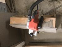 Um die Fräse sicher halten zu können, wird einfach ein dünnes Brettechen unten an den Bogen für die OF geklebt. Darauf kann die Fräse später gleiten.