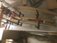 Einen wichtigen Hinweis habe ich noch: Die Latten sollten bei Schraubzwingenmangel wie ein U gebogen sein. Dadurch drückt - beim spannen der Latten außen - der mittlere Teil der Latte ordentlich an die Spanten.