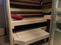 Wie schon von einigen angemerkt wird das Ergebnis in der Sauna bestenfalls suboptimal. Deswegen habe ich vor kurzem eine Vifantastisch in der Sauna an jener Stelle platziert, an der auch der Lautsprecher stehen soll: in der Ecke unter der Sitzfläche.