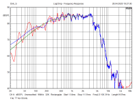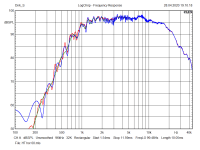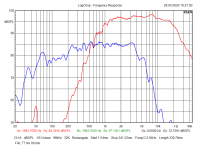 HT 6 dB zu laut -> passt ![]() Hier meine ersten Messungen der beiden Chassis im Gehäuse : [ATTACH=CONFIG]60409[/ATTACH] Der HT ist ca. 12 dB lauter als der TT. Vor dem HT habe ich einen 4,7, Ohm Widerstand eingebaut, das reduziert den Pegel um ca. 6 dB. Die restlichen Pegelunterschiede hatte ich durch unterschiedliche Amp Gain ausgeglichen. In deinen Winkelmessungen sehe ich annähernd den selben Pegel beim HT / TT . Da hätte ich was anderes erwartet, oder hast Du den Pegel vom HT schon am Verstärker reduziert ? VG Dirk
