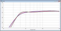 Koaxfan schrieb:...macht es Sinn, sich 200uF-Pakete von außen mit einem Drehregler schaltbar zu machen? Und für den chilligen Metal-Abend auf 800 oder 1000 zu schalten und für Heimkino auf 1.200?...die veränderung des kondensators bewirkt lediglich eine veränderung des frequenzgangs: [ATTACH=CONFIG]58739[/ATTACH] GHP mit je 110ltr (skalierung gespreizt zur besseren darstellung) schwarz 800µF rot 1000µF blau 1200µF achtung: der maximal mögliche pegel ändert sich nicht (daher auch nicht mehr explizit mit angehängt). wenn der maximalpegel (ca. 107db/35hz/halbraum, siehe simu im verlinkten thread "rechtsunten") zwecks partyeinsatz nach oben gehen soll, gibt es aus meiner sicht lediglich zwei optionen: -ventiliertes gehäuse bzw. line, oder -verschiebevolumen erhöhen die "klangbalance" könnte hingegen beeinflusst werden - solches ließe sich jeoch auch mit nem schaltbaren boost an der aktivweiche erzielen. :prost: