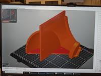 Leg das Viertel mal die Seite, so dass die flächige versteifung zwischen Flansch und Backe auf dem Bett liegt, dann braucht du nur noch minimal Support im Hals und kannst das Filament sinnvoller einsetzen (mehr Perimeter). Grundsätzlich lieber mehr Material in die Außenwände stecken, da bringt es mehr als im Infill, zudem wird es da auch zeitlich effizienter verdruckt. Man könnte das ganze Ding auch komplett ohne Infill Drucken, dann vielleicht noch ein zwei Top Layer zusätzlich, da die ersten beiden wohl teilweise wegsacken werden. Je nach dem wie gut der Drucker Brücken druckt. Dann noch mit einem geeigneten Material verfüllen... Wobei da bei den 7 mm Wänden bei 3*0,55 mm pro Seite keine 4 mm mehr zum Auffüllen bleiben... gerade nochmal als Massivdruck durch den slicer gejagt, 14,5 Stunden, 472g für ein Viertel. Das wäre auch noch zu bewerkstelligen.