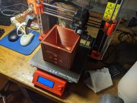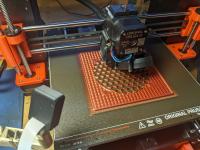 Aus dem Kopf sind die Einstellungen 15% Infill, 1,5mm Wandstärke (<-- das habe ich auf diesen Wert geändert), 0,2mm Schichthöhe, 0,4mm Düse, 0,4mm Linienbreite. Vorschub müsste ich nachher mal nachschauen. Generell habe ich die Erfahrung gemacht, dass bei zu hohem Vorschub die Layerhaftung schlechter wird und es bei sehr großen Drucken dann zu Rissen kommt, daher habe ich jetzt erstmal den langsameren Quality-Modus gemacht. Mir ist das in der Regel egal, der Drucker kann ja arbeiten, während ich was anderes mache...