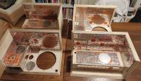Wir haben vorletztes Jahr eine Wohnung gekauft - das Wohnzimmer mit offenem Küchenbereich ist groß und schön, aber leider völlig ungeeignet um eine "klassische Fernseh-/HiFi-Wand" gegenüber vom Sofa aufzustellen, ohne dass eines von beidem mitten im Raum rumsteht (was wir nicht möchten). Wir hatten uns daraufhin entschieden, dass der Fernseher in ein kleines Gästezimmer kommt. Für eine amtliche Beschallung des Wohnzimmers hatte ich dann vor genau 1 Jahr diese zwei "Waschmaschinen" hier gebaut: