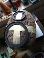 Parkettlack habe ich weggelassen und beide Eier mit Montagekleber gespachtelt.