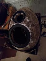 BR-Rohre werden aus leeren Montagekleberkartuschen, zunächst auf 8cm Länge, eingearbetet - bevor Beton auf das Ei kommt.