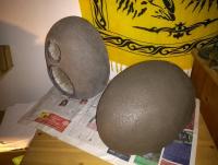 Die Oberfläche vom ersten Ei rieselt leicht ab, wenn ich mit der Hand drüber reibe. Wenn das so bleibt muss da noch Irgendetwas drauf, aber Betonfarbe ist ekeliges Zeug.