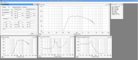 Das große Fenster zeigt den Frequenzgang des Treibers im Horn in 1 m Abstand bei einer Eingangsspannung von 2,83 V