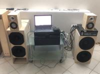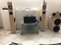 PC zu Fosi DAC und Behringer (modifiziert, abnehmbares Bedienteil), aufgetrennt auf Bass NAD C272 und Mittel- und Hochton die im Bild gezeigten CLASS D die im Wohnzimmer bei der Stella TIW200B100 eine super Figur abgegeben haben: