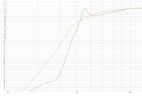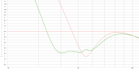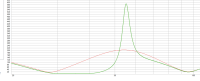Hier mal auf die schnelle via WinISD einen 8" PA Treiber mit @55Hz Tuning + 250W amping (rot = ohne EQ, grün = mit EQ)