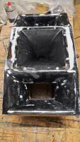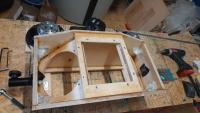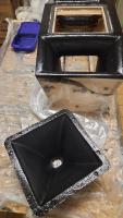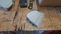 Die Variante mit Anwinkelung nach außen wäre durchaus zu bevorzugen. Nur die Aufweitung unten rum sollte abgeschwächt werden. Also habe Seitenwände und Rückwand hinzugefügt und gemessen: