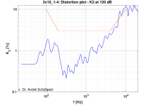 Der Anstieg v.a. des K2 zu hohen Frequenzen ist typisch für Hörner. Die Werte sind jedoch ca. eine Größenordnung niedriger für den verwendeten 1,4" als für 1" (s. auch die Simu/Messung im früheren Post)