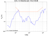 Auch hier zeigt sich das ausgesprochen niedrige Verzerrungsniveau. D.h. auch IMD tragen hier nicht bei. Bei dieser Messung bleiben die Verzerrungen unter 1%!