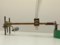 Auf diesem habe ich ein Gestänge plaziert, außen in der Vertiefung und innen über den LP-Aufnahmedorn. Auf diesem Doppelgestänge soll ein Schlitten laufen, der einen Schlauch aufnehmen kann, welcher 1 - 2 mm über der LP schwebt. Der Schlauch (Gartenbedarf / Baumarkt) mit  10 mm habe ich an den Haushaltsstaubsauger angeschlossen. Das ist deshalb möglich, da hier sehr geringe Flüssigkeitsmengen anfallen.