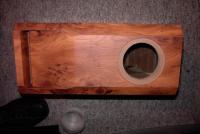 Hier noch ein Bild von einer Picolino1 in Eibe. Überstehende Folie wurde mit dem Cuttermesser entlang der Kanten abgeschnitten und anschliessend mit Schleifpapier bündig geglättet. Na ja, mit dem Schleifpapier war ich dann etwas zu doll am schleifen. Kann man auch noch schöner hinbekommen. Seiten und Rückwände sind an einem Stück, über einen 8 mm Radius an den Ecken der Rückwand aufgebracht worden.