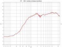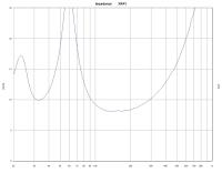 Man sieht die enorme Wirkung des Bafflesteps. Die Kurve lässt sich mit einer 2,7mH Spule flachlegen. Dann entsteht aber eine unschöne Kante beim Rolloff bei ca. 2000 Hz. Die wird mit einem Saugkreis verrundet.