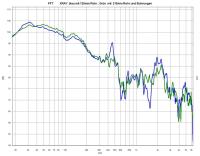 Man erkennt Unregelmäßigkeiten im Bereich um 2000 - 5000Hz. Das hat man eben davon wenn man symetrisch einbaut. Die Kontur auf der Schallwand scheint auch nicht allzusehr zu wirken. Ich lasse es trotzdem einmal so.