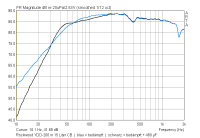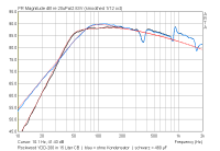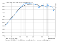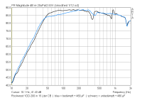 Und jetzt die Wirkung des 480 µF Kondis im stark bedämpften Gehäuse. Prizipiell ist der Effekt derselbe, nur nicht so stark ausgeprägt: