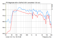 dann sehen wir die Übereinstimmung. Die einzige Differenz ist, daß ich in die minidsp-Abstimmung noch einen Hochpass eingefügt habe. Die war für den Käufer meiner ersten Plutino-Gehäuse, der starke 30 Jahre jünger als ich ist. In dem Alter fährt man ggf. höhere Pegel als ich und das soll der kleine Bass überleben. Cool