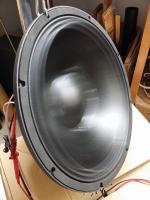 So wie es aussieht habe ich den Treiber jetzt beschädigt. Als ich nach Hause kam fehlte das Wummern aus dem Keller. Obwohl der Signalgenerator im Laptop und die Endstufe liefen machte er keinen Mucks mehr. Ich befürchtete zunächst dass der Verstärkerkanal ausgefallen war, schaltete den Generator stumm und und stöpselte auf einen anderen Kanal an der Endstufe um, dann drehte ich wieder auf. Jetzt bewegte sich die Membran wieder, machte aber schon ab recht geringen Hüben (1, 2 mm) extrem häßliche Geräusche. Es klang für mich wie wenn sie irgendwo anschlug, allerdings stieg der Hub durchaus wenn ich weiter aufdrehte. Dabei nahmen allerdings die Geräusche dermaßen zu dass ich schnell wieder zurückdrehte.